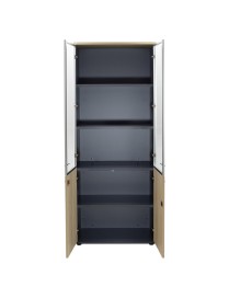 Ντουλάπα γραφείου με γυάλινες πόρτες Lotus pakoworld χρώμα φυσικό - ανθρακί 80x40x200εκ